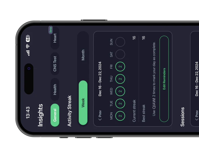 Designed to complement your QIAWI device, the app offers a range of powerful features to enhance your wellness journey. Whether on the free or premium plan, you'll find tools tailored toreduce stress, improve sleep, and gain valuable insightsinto your health.